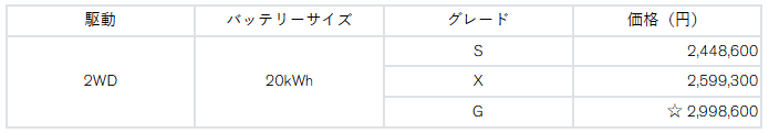 「日産サクラ」全国希望小売価格(消費税込み)