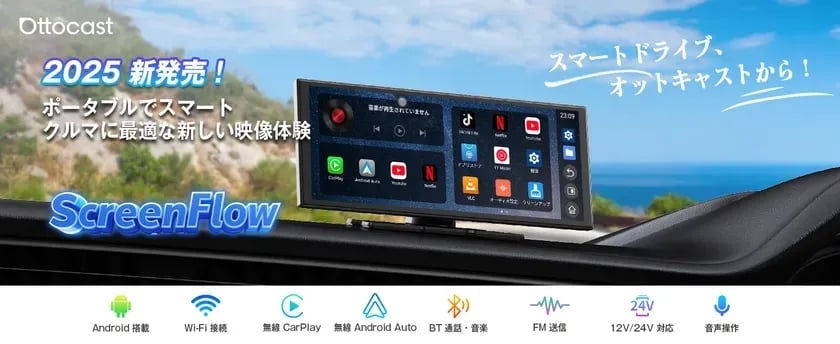 OTTOCASTは、すべての自動車に対応するワイヤレス車載ディスプレイ「OTTOCAST ScreenFlow」を提供している。本製品は、既存の自動車の車内を最新のスマートカーへと進化させることを目的としており、長距離ドライブや日常の移動における快適性向上を目指す。特に、最新のナビゲーションシステムやエンターテイメント機能が不足している古い自動車や中古車のユーザーにとって、手軽に車内環境をアップデートできるソリューションとなる。
