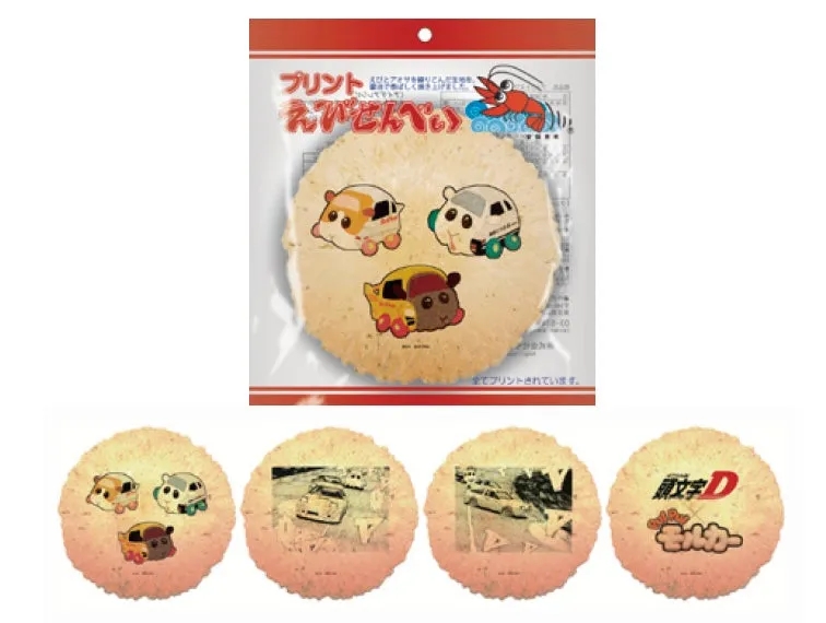 軽やかな食感のえびせんべいにも、モルカーと頭文字Dのコラボデザインが施されており、手軽なプレゼントにも適している。