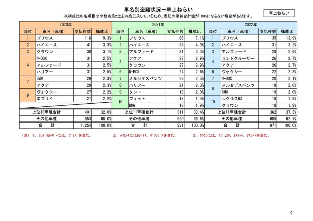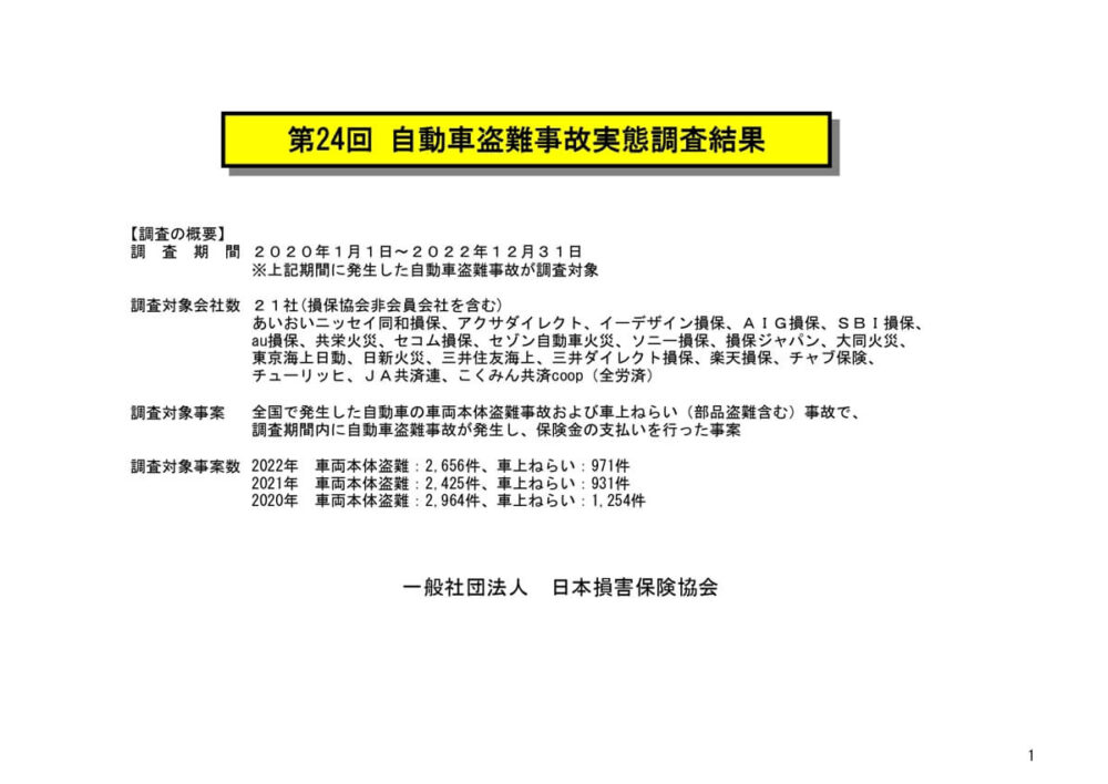 出典:自動車盗難事故実態調査 - 一般社団法人日本損害保険協会