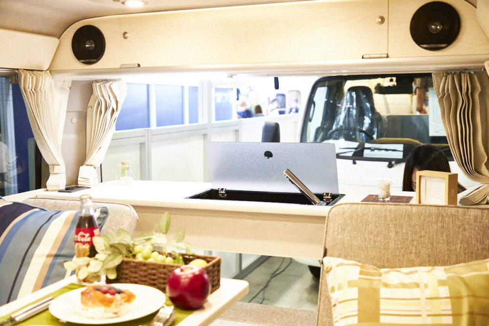 N-VANやN-BOXベースの軽キャンパーを扱うホワイトハウスキャンパーのブース