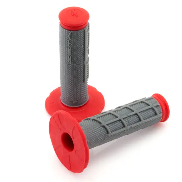 オフロードバイクに用いられるグリップには様々な種類がありますが、一般的に細く硬いグリップほど握る手に力が入れやすく、きめ細やかなコントロールが可能となるため、モトクロスなど短時間のスピード競技で好まれる傾向があります。逆に太いグリップは表面を柔らかいゴムで覆われていることが多く、コントロール性が少し劣る代わりに振動を軽減し、疲れにくいため、クロスカントリーなど長時間に及ぶレースやツーリングで好まれます。