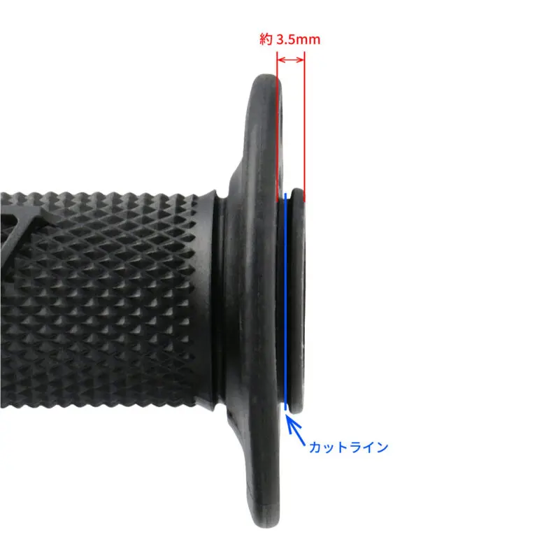 また、ツバ部分をカットすることで全長を3.5mm短くすることができ、ミニモトなどに装着する際に便利です。