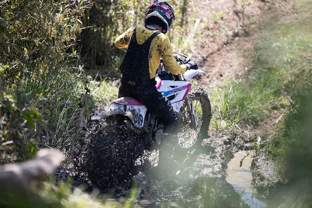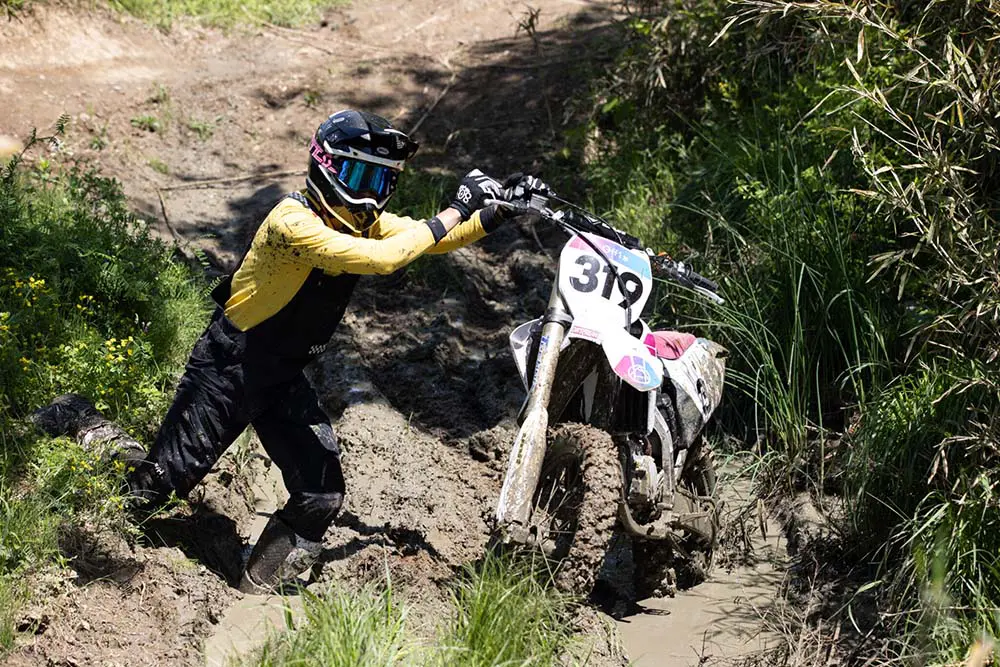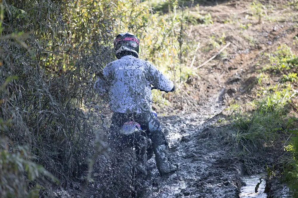 走った路面はもはや沼。でも、こういう状況も楽しめちゃうのがモトクロスですよね。