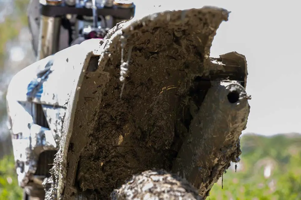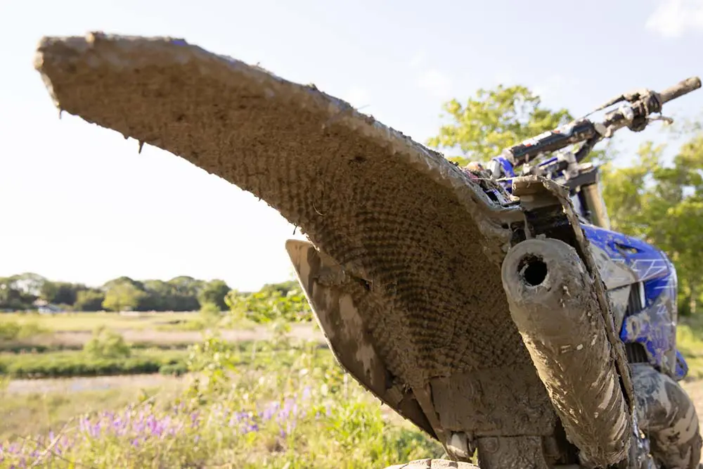 泥の重さに悩まない!フェンダーマット装着で快適オフロードライディング