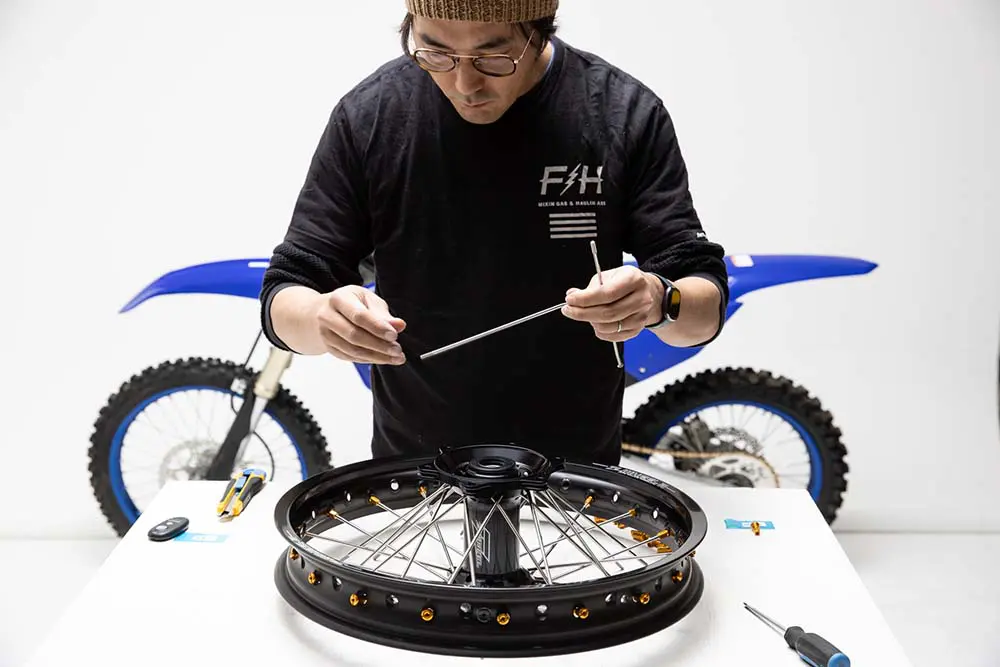 編集部稲垣は、ぐにゃりと曲がったホイールを自分で補正を試みたことはあるんですが、いちから組むのは初めてのことでした。