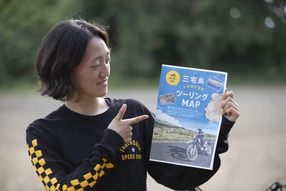 「三宅島の林道は舗装された道が多くありましたが、場所によっては路面が荒れていたり、がっつりダートで、ちょっとマディな部分もありました。ゆるいアップダウンやカーブが多くあり、特に坂道やカーブからの加速はとても気持ちよかったです。また、道の広さも狭すぎず、走れるラインがいくつかあったので走りやすいと感じました。三宅島にはいくつも林道があって、林道によって道の特徴は異なりますし、入ってから出るまでの距離も長く、走り応えをすごく感じました」