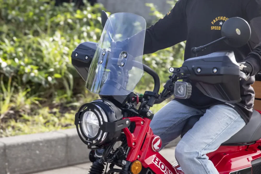 ハンドルバーとグリップエンドを結ぶガード。CT125ハンターカブ専用のバーエンドが付属しているため、面倒な純正インナーウエイトの脱着作業をせずに装着が可能です。