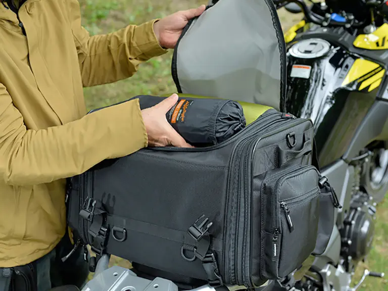 ツーリング時、荷物を入れたリュックやショルダーバッグを長時間身に着けているのは疲れますよね。またツーリング先でお土産を買って荷物が増えるなんてこともあるかもしれません。そんな時に効果を発揮するのが車載可能なツーリングバッグです。