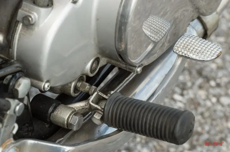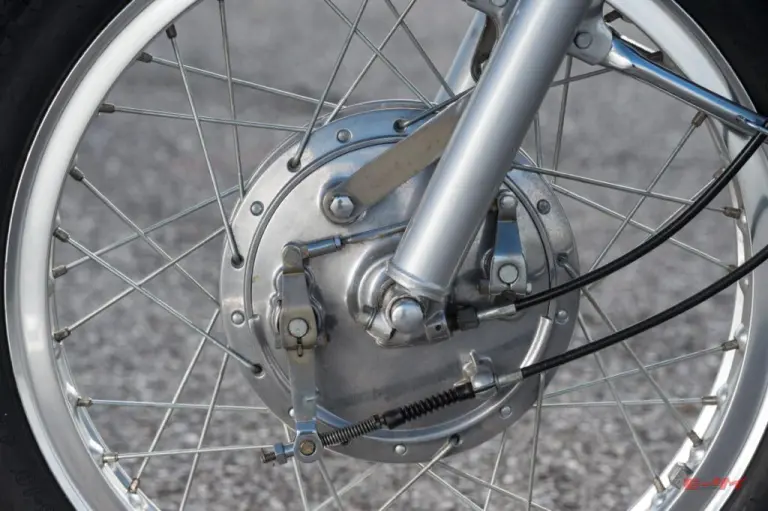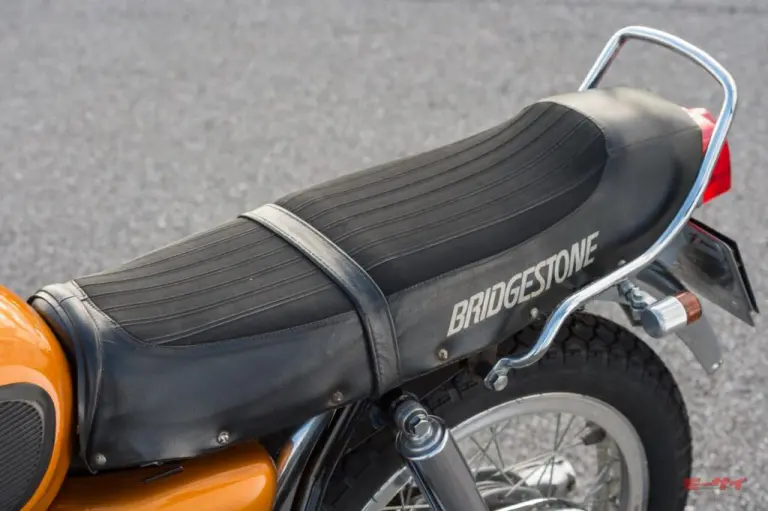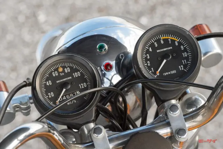 それで楽な気分になったが、シフト操作でまた戸惑った。ニュートラルからかき上げても、シフトの入る感触がなかったからだ。レーサーパターンかと思い踏み込んでわかったが、同車はかき上げトップがニュートラルで、以降1~6速まで踏み込むのだ。なぜその方式にしたのかわからないが、BSのリターン式シフト車は他も同じ方式というから、BS技術者のレーサー的なマシンへのこだわりだろうか。これも当時の国産モデルでは異色の部分だ(ただし慣れで解決可能)。