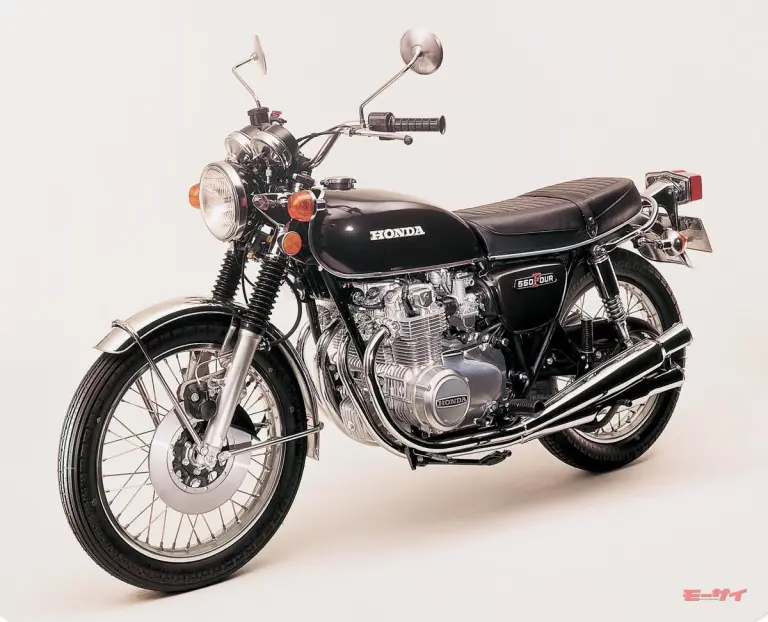 ■CB550FOUR(1974):500からボア+2.5mmの544ccに排気量アップされ、最高出力2psアップほか、高いトータルバランスを維持して登場の550フォア。