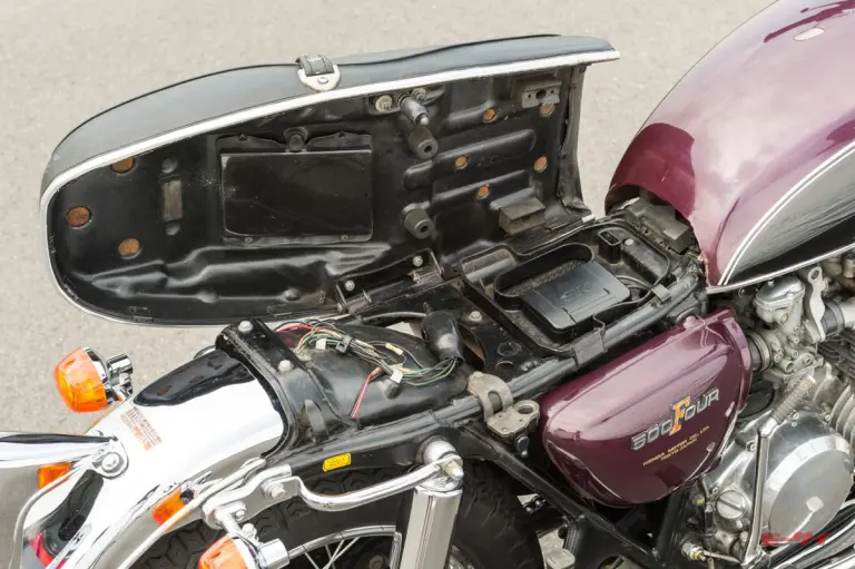 また「振動も騒音も静か」とデビュー当時の試乗記に書かれたエンジンは、70年代初頭の750フォアやCB450系のように低回転からゴウッゴウッとした野性的な音は発しない。かといってスロットルを開ければ、フオーンフオーンと、4気筒らしいサウンドがラッパ形状の排気エンドから聞こえてくる。まさにホンダサウンドだ。