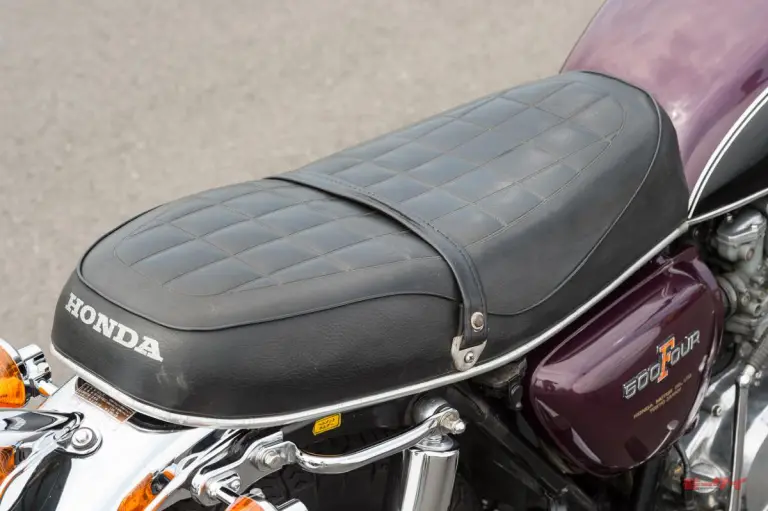 500フォアのカタログには「体格、年齢を選ばない人間工学を追求したライポジ」とうたわれているが、シート高、タンク幅、その下に収まる4気筒のエンジン幅(750より40mm狭い)、ペダル位置ともによく考えられている。この時代のマシンでは、シートの縁が角張っていたり、足を下ろすとステップやキックペダルが干渉したりといった場合も多々あるが、500フォアは実に違和感のない取っ付きやすさだ。