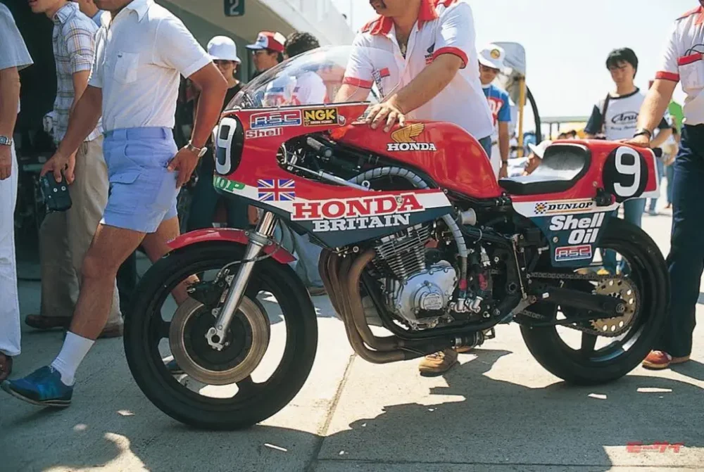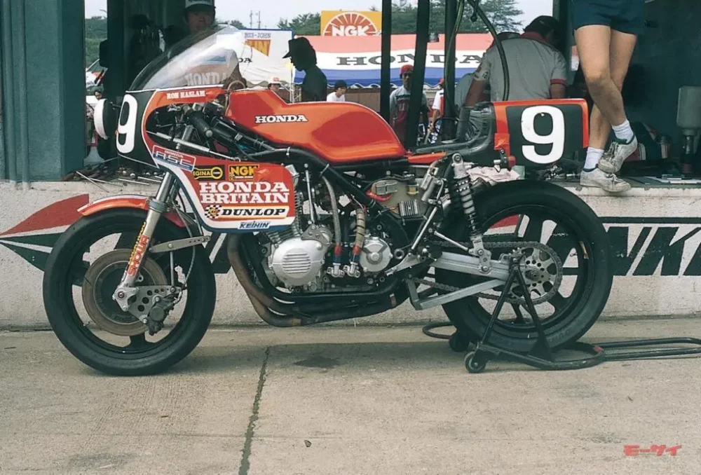 ■80年の鈴鹿を走ったホンダRS1000は、チームによって仕様が異なっていた。最も異彩を放っていたのは、スイングアームピボット部の剛性を高めるためにメインフレームを湾曲させ、シートレールをボルトオン式とし、リヤにリンク式モノショックを採用したホンダブリテンの♯9。エンジンにRSC製キットパーツが投入される点は他チームと同様だが、排気系はRCBや他のRS1000が採用する4-2-1式ではなく、独自の4-1式。