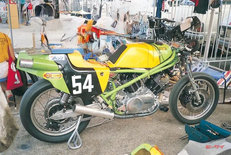 ■今大会唯一…と言うより、 おそらく鈴鹿8耐史上唯一の参戦となったヤマハXVは、モトイネレーシングからのエントリー。 美しいフレームワークとカラーリングで注目を集めたこのマシンは、東條 健/杉山 孝ペアのライディングで20位完走を達成。