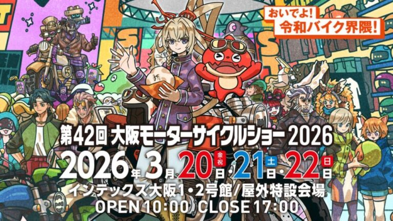 関西最大級のバイクイベント「第42回大阪モーターサイクルショー2026(以下、大阪モーターサイクルショー)」が、2026年3月20〜22日にインテックス大阪で開催されます。第42回となる今回も、これからバイクに乗り始めるという人からベテランライダーまで、幅広い層が楽しめる内容となっています。最新モデルの展示はもちろん、用品やアパレル、ステージイベント、話題のコラボ企画など、大阪モーターサイクルショーの見どころをまとめて紹介します。