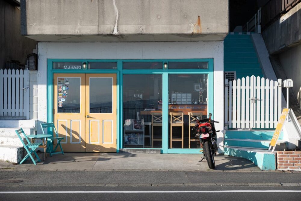 MOTOINFOのおすすめカフェ3つ目は、神奈川県三浦郡葉山町の「Felicity(フェリシティ・カフェ)」です。2024年8月にグランドオープンしたばかりで、オーナーはフォトグラファー・クリエイター・起業家として活躍する桐島ローランドさん。かつてパリ・ダカールラリーに参戦し完走した経験もあります。閉店したバイクショップ「幸福商會」をリノベーションした店舗では、“こだわりのコーヒー1杯がもたらす幸せ”をテーマに、ハンドドリップやエスプレッソ、グルテンフリーのオリジナルワッフルなどが楽しめます。桐島オーナーは「Felicityは遊びのフィールドの入口と出口になる場所にしたい。人と人が自然につながる場として、イベントや展示も行い、孤独を感じずに楽しめる長く愛されるカフェを目指します」と話します。今後はメニューをさらに充実させ、キッチンカーでの販売も予定しています。