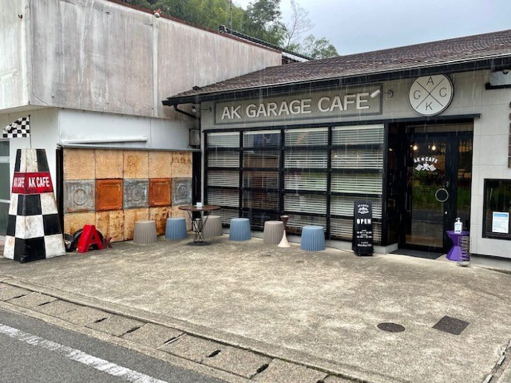 続いてMotoMegane 上田編集長がおすすめするライダーズカフェは「AK★CAFÉ(エーケーカフェ)」です。AK★CAFEは、兵庫県豊岡市・出石町福住、城下町・出石の少し外れに位置しています。元料理人のオーナーが手がける、牛100%のハンバーガーやプレートランチが人気です。店舗はアメリカ西海岸風のおしゃれな空間が特徴的で、バイクを含む駐車スペースもあるため、ツーリング途中の立ち寄りにも適した一軒です。