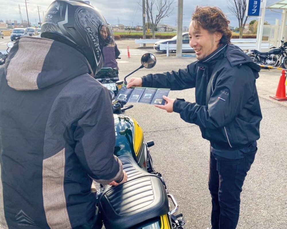 納車時の丁寧なアドバイス(Safety Riding Advice)から始まり、ツーリングや試乗会などの各種イベントに、プロの視点による安全指導(Safety Riding Support)を加えてビギナーから熟練ライダーまでをトータルにサポート。単なる車両販売にとどまらず、お客様の安全を第一に考えるパートナーであり続けることを目指しています。