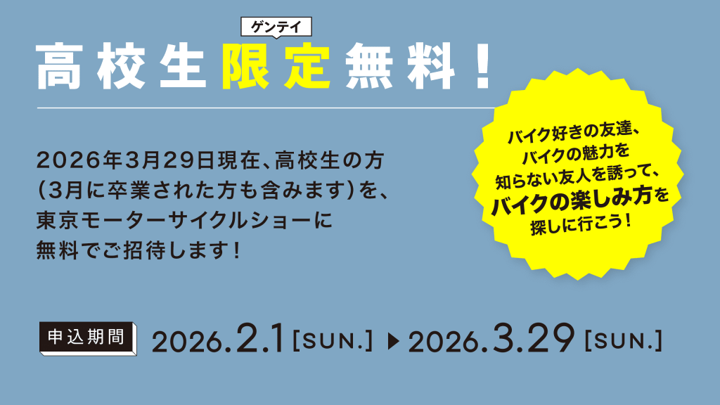 東京モーターサイクルショーでは、3月27日(金)14時20分から告知ステージを実施予定です。二輪車業界がどのような未来を描いているのか、その取り組みにぜひ耳を傾けてみてください。