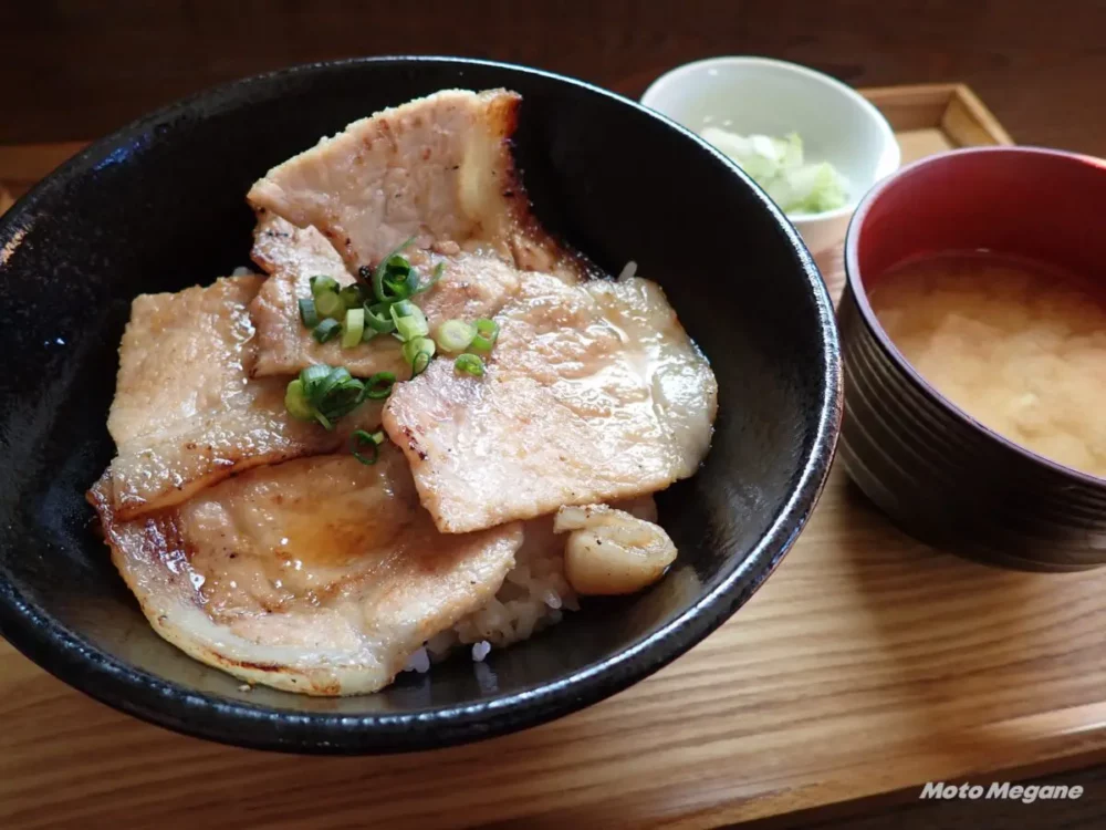 特産の恵水ポークを使ったこだわりの豚丼。豚丼はロースかバラ、もしくは両方が乗ったミックスから選ぶことができる。豚肉は網で焼いてから、あっさりめの甘辛のタレがかけられている。肉は柔らかく、脂身の部分はさっぱりとして甘みがある。あっさり系の豚丼で、箸が進むこと間違いなし。
