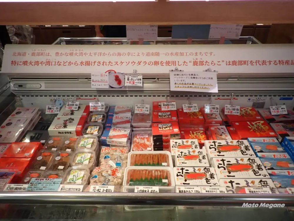 駅舎内には物販で「鹿部・食とうまいもの館」「道の駅のさかな屋」の2店舗、飲食では「浜のかあさん食堂」「こいたのおかず屋」「ソフトクリームショップ」が入る。なお、食堂の営業時間は11時から14時までと短めなので、早い時間が狙い目だ。
