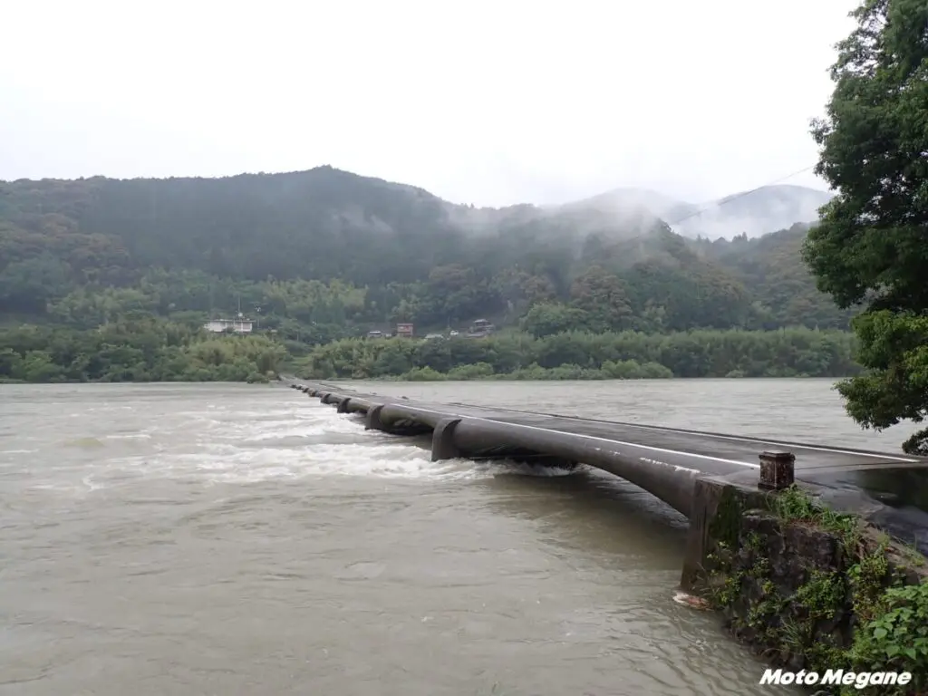 川の水が多くなると川中に沈むように造られた欄干のない橋。四万十川流域には大小合わせて数多くの沈下橋があるので、のんびり沈下橋巡りもおすすめ。道の駅近くには車両の通行が可能な「半家橋」や、二輪車以下のみ通行できる「中半家橋」がある。沈下橋と川の風景は、四万十を代表する景色。