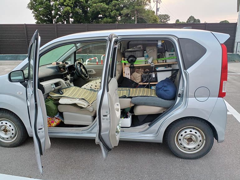 筆者はとある事情で、キャンピングカーとしての架装も車中泊仕様への改造もなにもしていない軽自動車ダイハツのムーヴでただ寝るだけでなく、6カ月間生活しました。