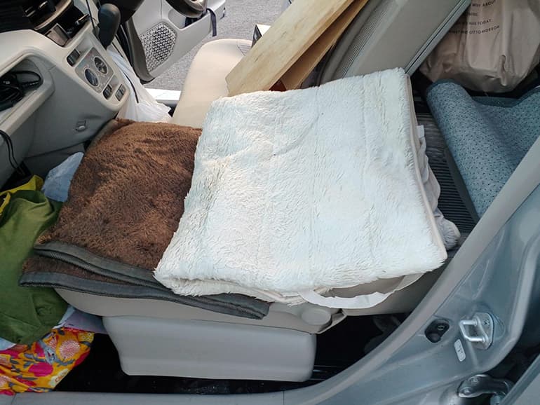 一方、真夏は布団が邪魔になります。この時ばかりは車から布団を降しています。