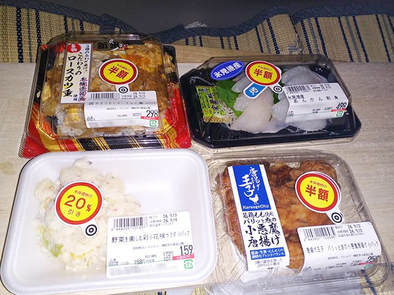 食事の中心は地元スーパーの弁当・惣菜です。