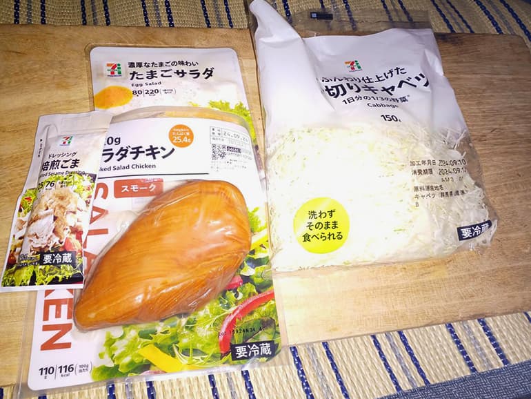 言うまでもなくコンビニには、弁当はもちろんカット野菜やお惣菜、麺類などちょっとした調理ができる食材もそろっています。