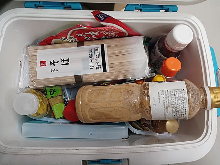 クーラーボックスには、調味料などを入れています。