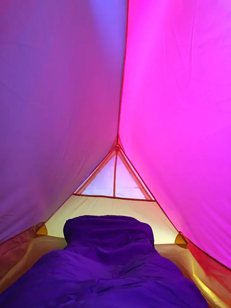 ほどよく酔った後はあったかいシュラフに潜り込み、ウトウトと幸せな眠りにつきましょう。zzz…