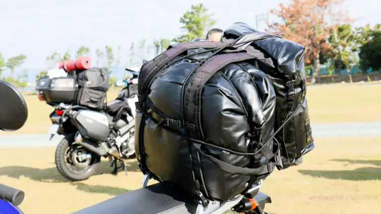 あとは自分がRR9304 AQA DRYバックパックPROを背負うだけ。ここには基本的にレインスーツぐらいしか入れず、買い出し後の食材や身の回りものを収納し旅先でのプラスαに備えます。