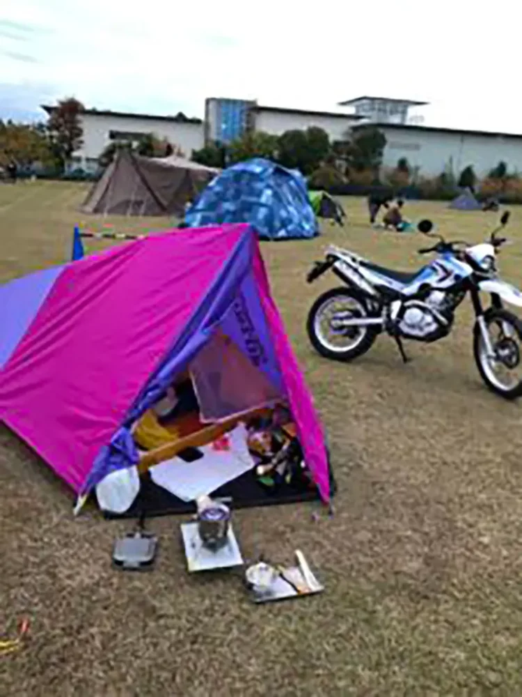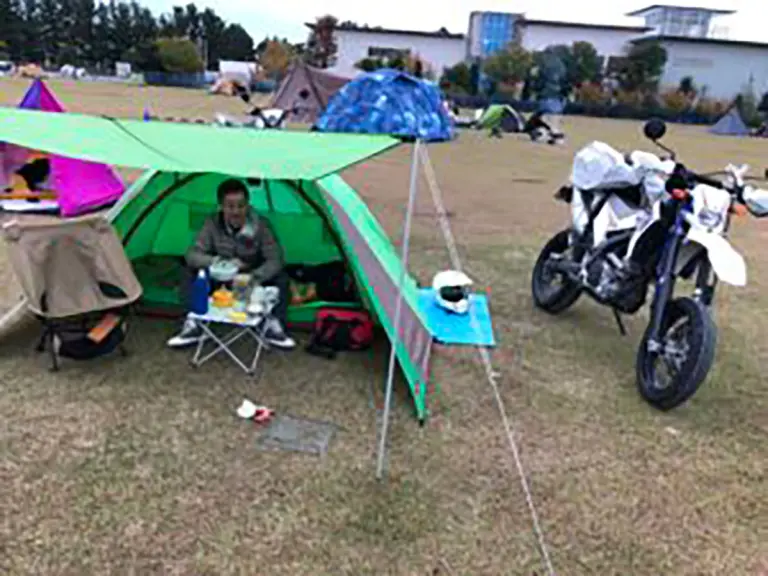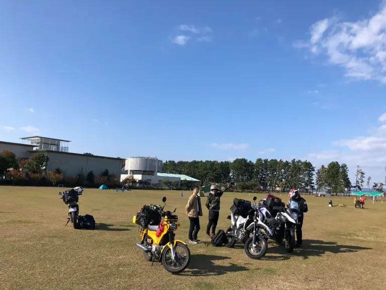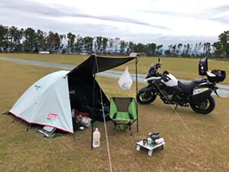 バイク乗りあるある?渚園キャンプ場の朝