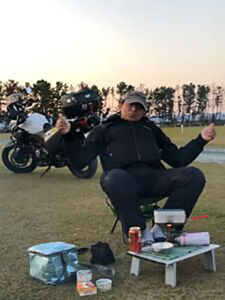 乾杯が終わるとお酒を飲めないGATAGOTOさんが、セロー欲しい病全開で僕のセローに跨りニコニコしながら「いいなぁ、セロー!セキネさんコレちょうだい!」って。