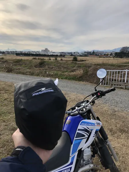 14時半を過ぎると風が出始め富士山にも雲がかかり始めます。午前中はぽかぽかと暖かいけれど午後になると急に肌寒くなる、この時期のお散歩ツーリングに、僕は必ず「アレ」を携行しています。