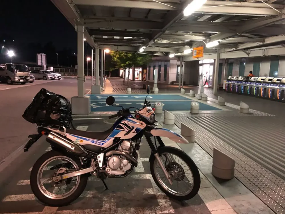 まず向かったのは道の駅のとじま。ここではトリッカーのSSTR参加ライダーと、荷物満載でキャンプツー途中のセローライダーに会いました。