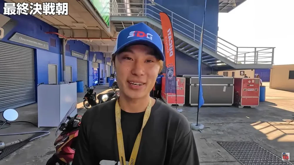 アジアロードレース選手権でチャンピオンに王手を賭けた最終決勝戦の朝にインタビューしています。