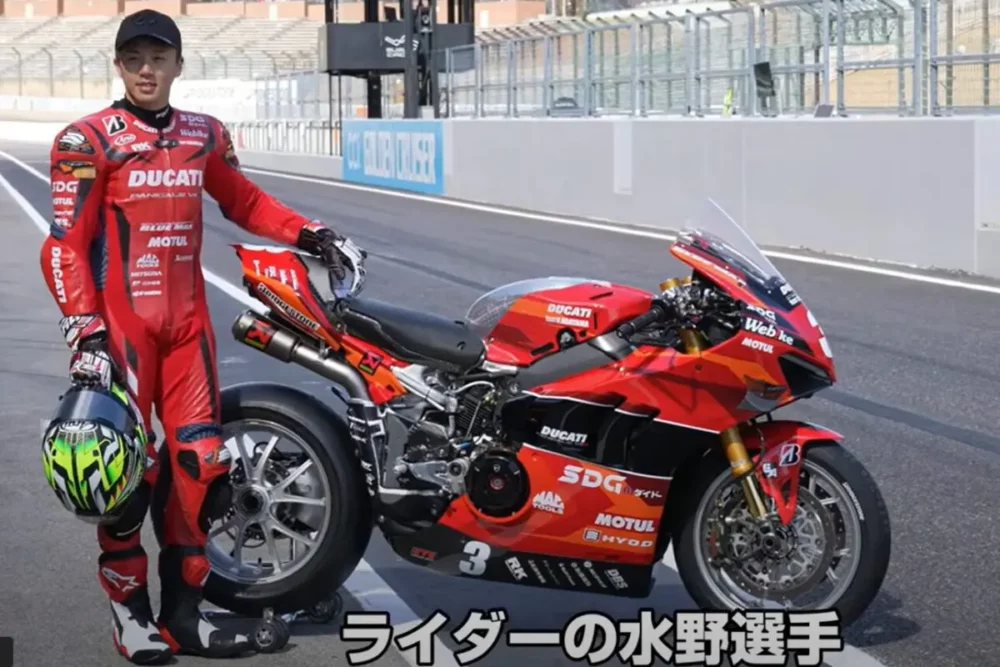 PanigareV4Rを操るのは、水野 涼選手(ゼッケン3)です。外車にはピレリ―などが装着されることが多いですが、ブリヂストンのタイヤを装着するなど、世界でも類を見ないパッケージに注目が集まりました。