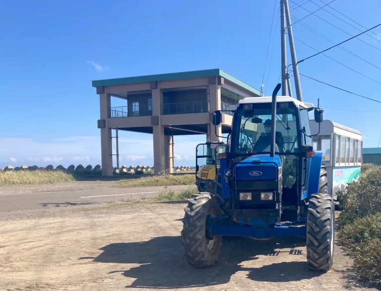 野付半島ネイチャーセンターから歩いて30分、もしくはトラクターで人が乗れるキャビンを牽引する「男の子ってこういうのが好きなんでしょ?」的なワイルドな乗り物「トラクターバス(片道500円)」に乗って行ける場所が「トドワラ」です。