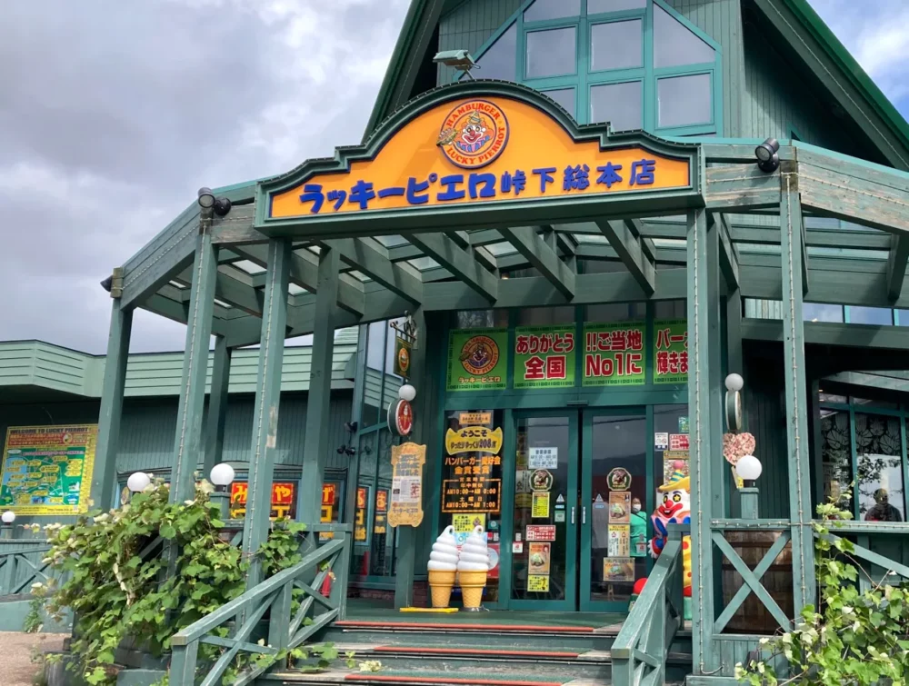 するとたった5分程でまるでテーマパークのような出立ちの「ラッキーピエロ 峠下総本店」が出現するので…もちろんテーマパークのように入場料なんてかかりませんので、臆せず入店しましょう!