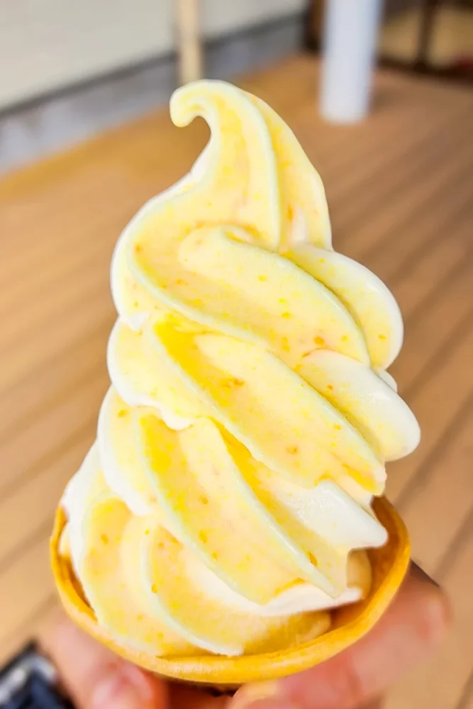 運が良ければ雲海も見ることもできます。物産館では地産の農産品やお惣菜が充実。地産の果物やお茶を使ったソフトクリームもおすすめです。営業は8時30分(レストランは10時)からです。