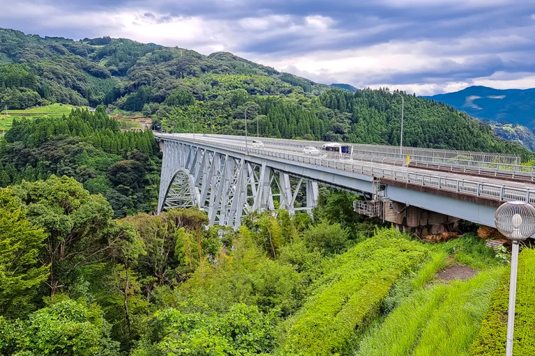 日之影町のシンボルとも言える日本有数の高さを誇る青雲橋(せいうんばし)を一望する道の駅青雲橋は、森林セラピーロードの拠点にもなっています。というのも、日之影町は全国で初めて「森林セラピー基地」(森林浴ができる場所と科学的に裏付けされた場所)に認定された町だからです。道の駅の明るい館内にも、木がふんだんに使われていて、展望デッキからの眺めも良く、朝のパワーをチャージできそうな雰囲気です。
