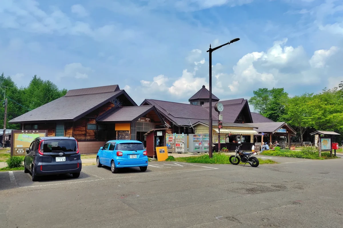 道を戻って、「道の駅裏磐梯」[ツーリングマップル東北 P.18(関東甲信越 P.103)H-3]に立ち寄ります。トイレ休憩だけの予定でしたが、カソリさんから特産品の「山塩」を使った料理をおすすめされたので、ここで昼食タイムとすることに。さらに、美味しいジェラートも味わって、元気満タンで、再スタートです。
