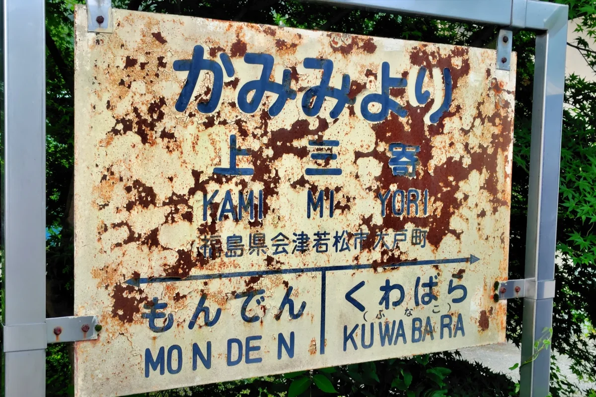朝食までの時間、旅館周辺を散策です。歩いてすぐの場所には磐越西線のJR翁島駅。この駅は、旧千円札の肖像画が描かれていた「野口英世」の生家の最寄り駅でした。駅前には、当時の様子を伝える掲示があり、そこには米国留学を終えて帰ってきた地元の名士を出迎える人達を「野口英世」本人が撮影した画像もありました。