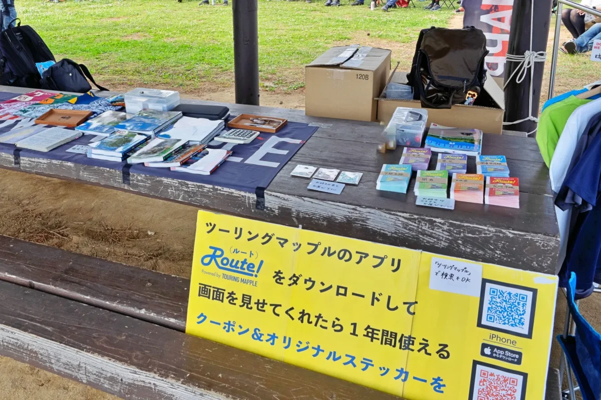 すでに、マスキさんは、ツーリングマップルのブースの設置を終えていて、ちょっと遅刻したかなと反省です。