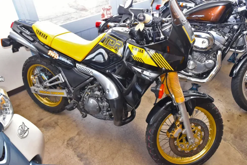 愛車の中には、1988年にヤマハから発売された”元祖アドベンチャー”である「TDR250」の姿も見えます。