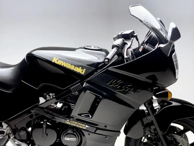 今回ご紹介する作例は、モデラーSho_taroさんが製作した後期型「D3仕様」。自身がかつて所有していた愛車をモデル化したものです。特徴的なのは、D3型特有のブラックフレーム&マフラー、そして“Ninja”ロゴの入った外装。このロゴが話題となり、一時期はGPZ400Rの人気が再燃したほどのインパクトがありました。